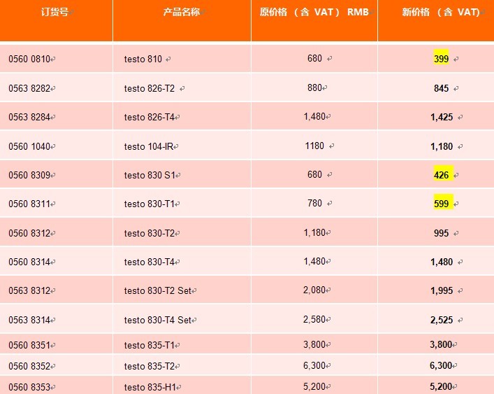 德图仪器为进一步增强德图红外产品线的竞争力提高市场占有率,自2013108日起,德图公司将对部分红外测温仪产品的价格进行降价调整,价格如下:
