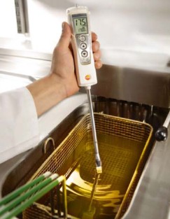 3 通过在煎炸油中使用简单测试功能 (精度 +/- 3% TPM): 对于一个不需要校准的简单测试功能,我们建议您在启用您的新仪器时先对油温150 到180 ℃.的未煎炸过的油中先做下测量。 您最好连续反复的执行这一测量,并留意各自的读数。这些读数的平均值将会成为您今后测量的参考值。以后在校准仪器时,可以在未煎炸过的油温150 到180 ℃ 的油中测量,并用之前的平均值做为参考校准。 请注意,当更换其他类型的油或者更改油的供应商时,上述的参考值将需要重新确定。