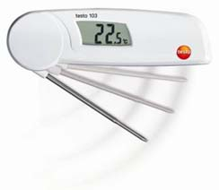 testo 103 可折叠式温度计。适用于食品生产车间、餐饮、酒店、工业厨房、超级市场等的快速测量。该款温度仪外形小巧、经济实用。配备的探头极细而坚固,非常适合测量小尺寸食品的中心温度。